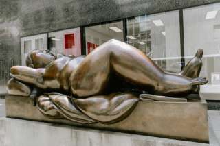 Bronze sculpture of a reclining woman in front of the Liechtenstein Art Museum in Vaduz.