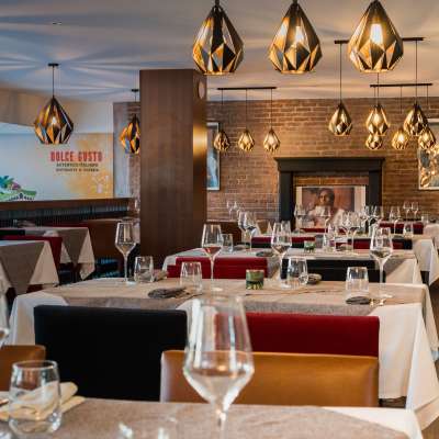 The Ristorante & Pizzeria Dolce Gusto delights with a daily fresh selection of pasta, crispy pizzas from the wood-fired oven, as well as fish and meat dishes. The restaurant seats 150 guests in a modern, typically Italian ambience. In the warmer months, the terrace in the inner courtyard extends the available space and invites you to relax and enjoy your meal.