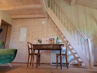 The holiday home offers space for up to seven people with two cozy bedrooms and an open gallery with three additional sleeping places in the dormitory, which is particularly suitable for adolescents , but not for small children.