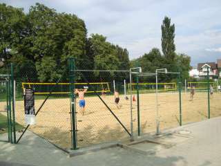 Beautiful, illuminated footpaths run through the entire leisure and recreation park. The beach volleyball facility with grandstand has three courts. Parking spaces are available.