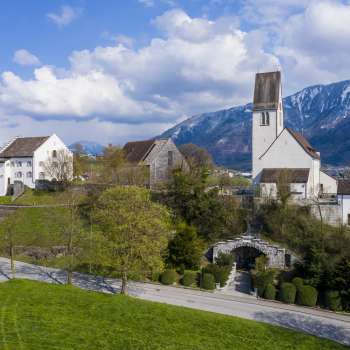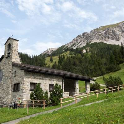 The Catholic Peace Chapel in Malbun is located at 1627 m above sea level and was built between 1950 and 1951 according to plans by architect Johannes Hugentobler. It is dedicated to the peace patrons Mary and Brother Klaus as thanks for sparing Liechtenstein from the consequences of the Second World War. The single-nave chapel made of natural stone has a flat-roofed choir and a belfry above the roof ridge.