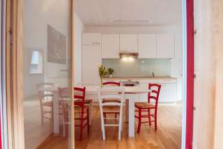 In the guest house, guests can choose between a cozy breakfast basket for CHF 10 per person, a hearty breakfast in the Restaurant zur Alten Eiche for CHF 12.50 per person or the option of cooking their own meals in the in-house kitchen.