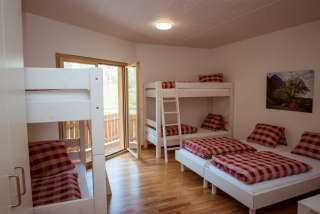 The new building is equipped with a bathroom and WC in the hallway, kitchen and lounge as well as one double room, one 4-bed room and one 6-bed room. The rooms are reasonably priced and allow budget travelers to enjoy the comfort of homely accommodation. Bed linen is included in the room price.