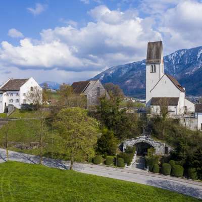 The hill has probably been inhabited for 4000 years and a church may have stood there as early as the 6th century. The new Gothic-style parish church was consecrated in 1481. The rectory dates back to 1539.