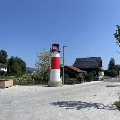 Lighthouse "Moby" is also a body of sound, as it can sing like a whale when its belly is made to vibrate with a clapper. Moby was created by artist and sound keeper Roman Rutishauser and his son Hannes from St. Gallen on behalf of the Office of Culture especially for the Art Harbour of the 2023 Artists' Meeting of the International Lake Constance Conference (IBK).