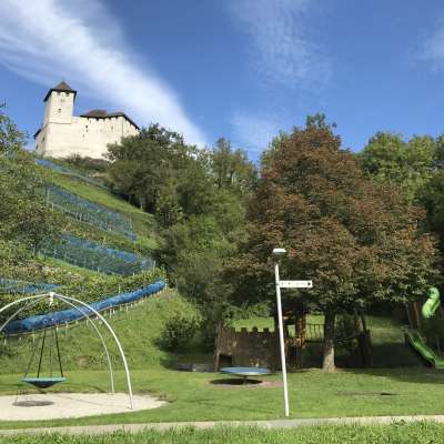 The playground below the Gutenberg Castle offers a beautiful environment for play and relaxation. With a slide tower, seesaw and other play facilities, it is a popular meeting place for families. WC facilities and parking spaces provide additional convenience. The facility is only five minutes away from the nearest bus stop and is therefore easily accessible.
