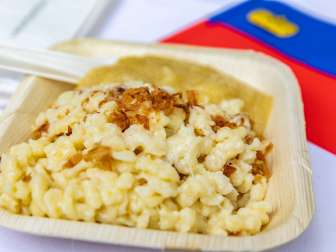 For ten people, 1 kg of flour and about 4 to 5 eggs are enough. The right cheese mixture is crucial. The Knöpfle are easy to prepare: simply rinse with cold water - the best way to do this is with a salad spinner. Just before the guests arrive, reheat the Knöpfle in salted, boiling water.